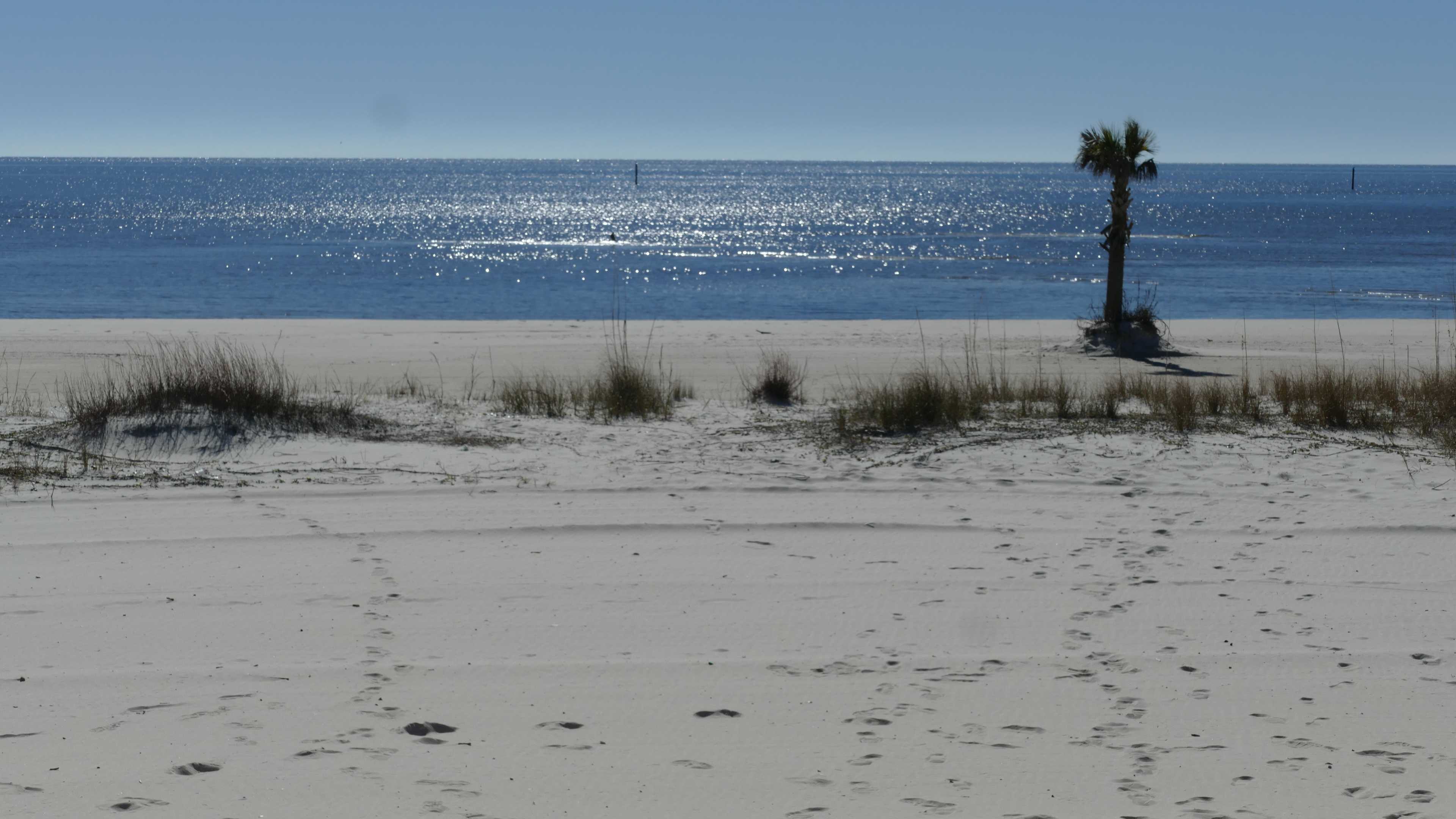 Weiter geht’s an der Küste entlang Richtung New Orleans. Wie schon in weiter südlich an den Küsten von Westflorida ist auch hier der Sand schneeweiß. Die Temperaturen sind aber leider nicht so, dass es uns zum Baden animiert.