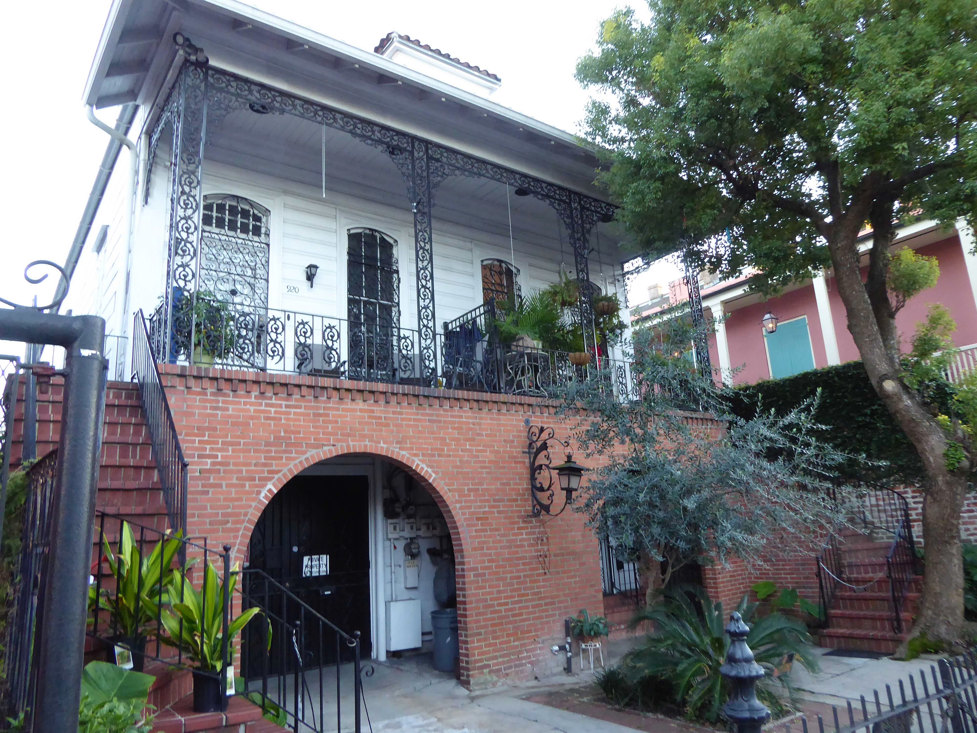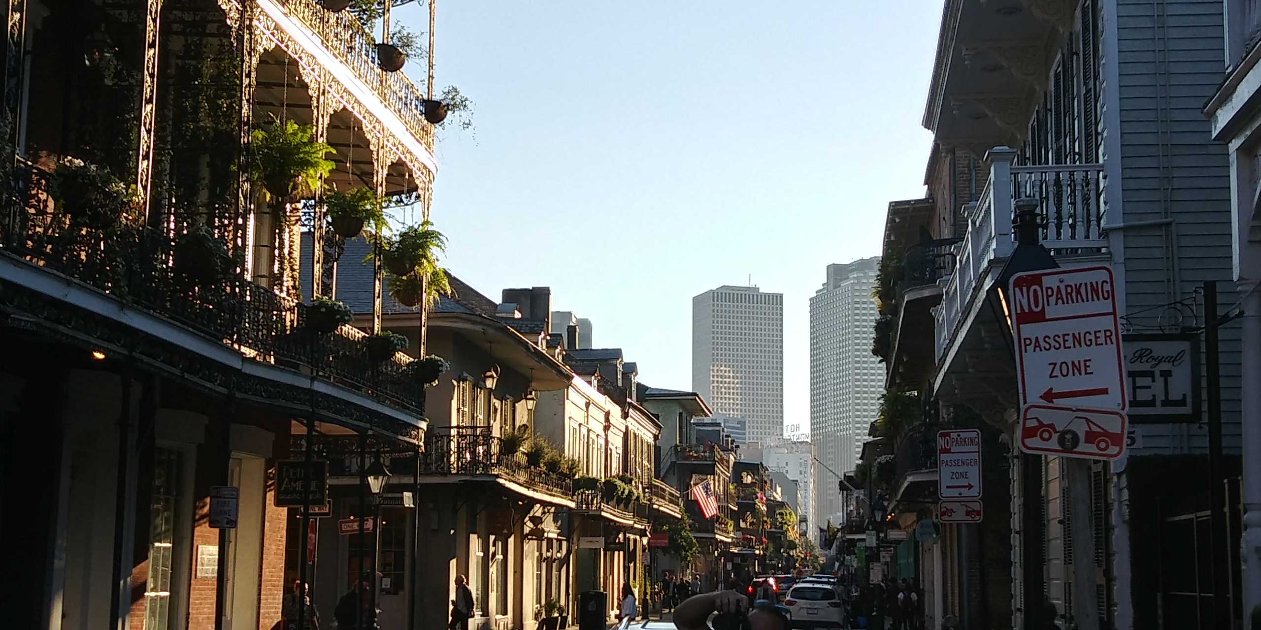 Die Dämmerung setzt ein und wir arbeiten uns tiefer ins French Quarter rein, bestaunen die tollen gusseisernen Balkone, die mit Blumenkübeln voll mit Farnen geschmückt sind. Zwischendurch immer wieder kleine Villen, meist kleine vornehme Hotels, die die Szenerie auflockern. Auch an einigen bekannten Restaurants wie das Antoines kommen wir vorbei, können es uns gerade so verkneifen, hier zu essen. Die Preise sind horrend! Voll schnieke.