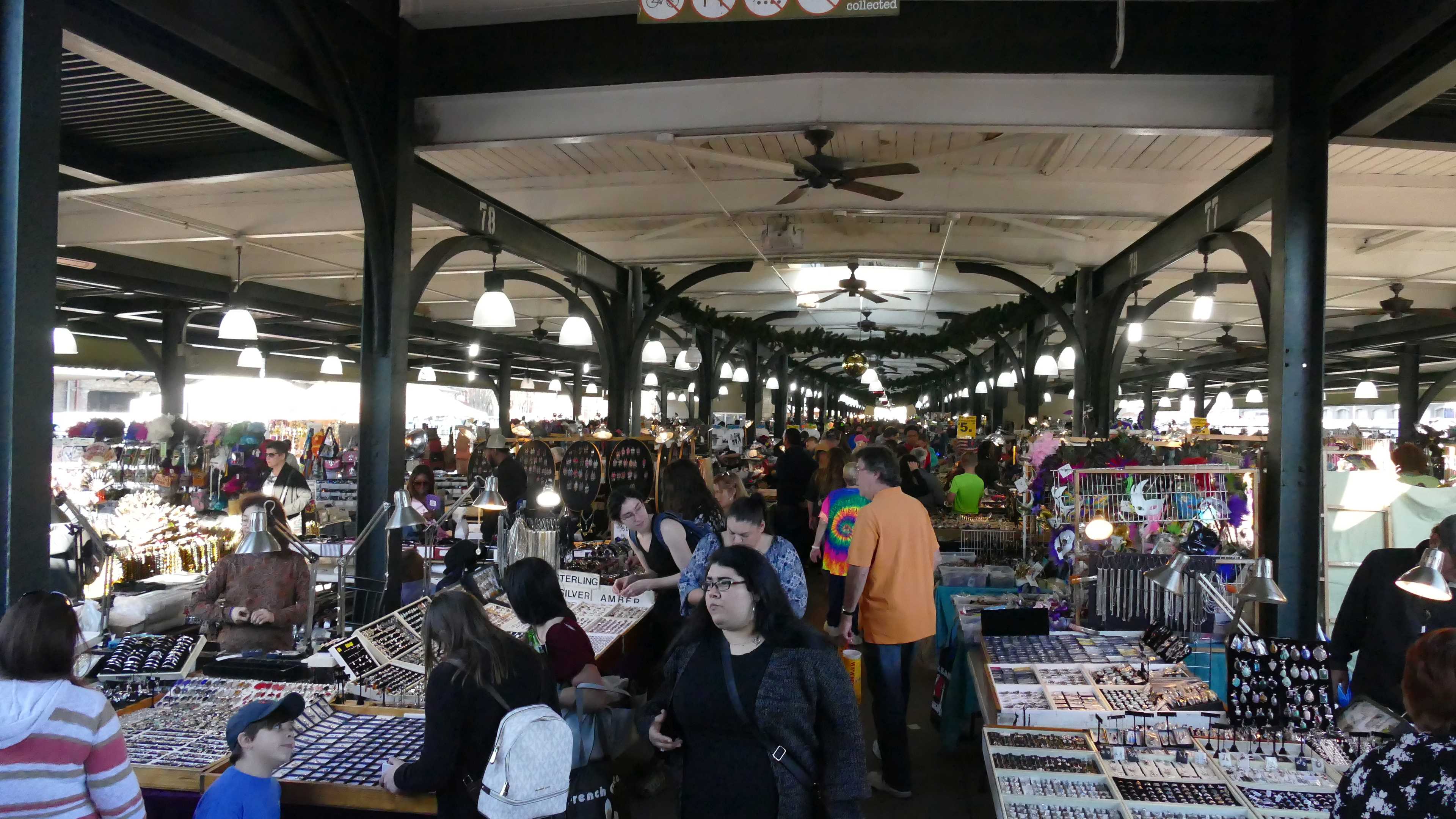 Im French Quarter angekommen, fahren wir direkt zur Kathedrale und bummeln noch etwas über den Künstlermarkt, schauen auf dem French Market vorbei mit einem kleineren Essbereich und einem größeren mit allem möglichem Krimskrams. Wir gönnen uns ein etwas überteuertes Poboy (typisch für New Orleans: Baguette-Sandwich mit Einlage). Anschließend rollen wir nochmal durchs French Quarter an den Häusern mit den tollen Balkonen vorbei, die wir heute nochmal bei Tageslicht betrachten können. Zu guter Letzt treffen wir auch noch auf die in Reiseführern beschriebenen Straßenpoeten, die gegen Geld spontan Gedichte oder Briefe schreiben.