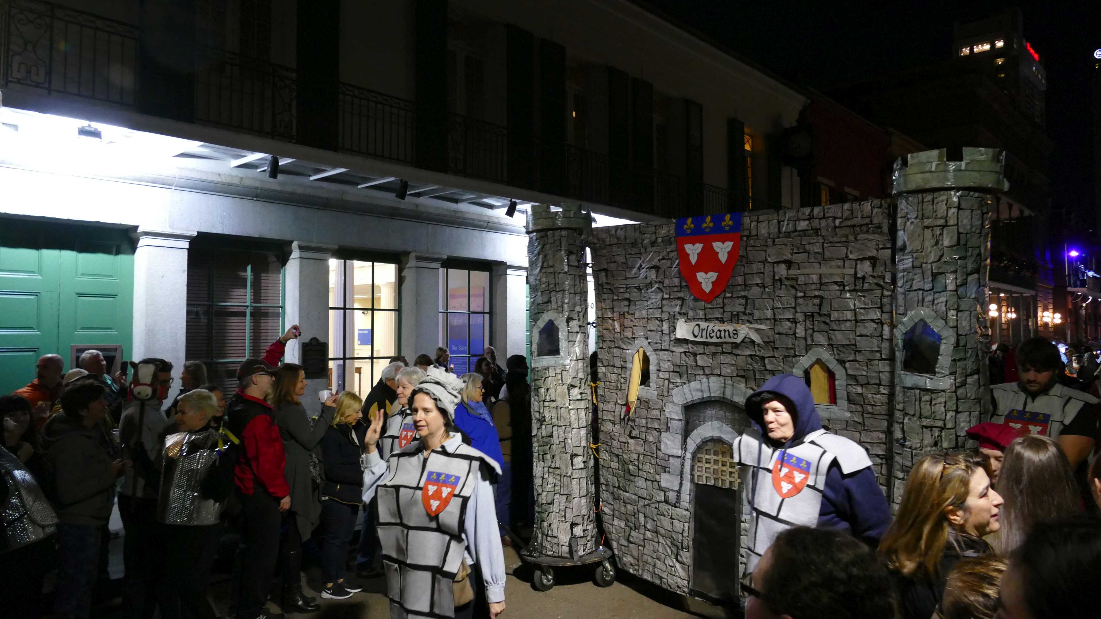 Um es vorweg zu nehmen: Thema Krewe of Jeanne d'Arc, also ein Umzug zu Ehren von Jeanne d'Arc. Zusammengefasst erinnert der Umzug eher an einen Martinsumzug mit Laterne als an einen Karnevalsumzug in New Orleans. Wir haben eine Parade mit viel Musik und so was ausgelassenes wie mittags erwartet und sind deshalb etwas enttäuscht. Der Umzug ist dann auch nach ca. 45 Min. vorbei und nur gegen Ende sind Kostüme und Darsteller etwas ausgefallener.
