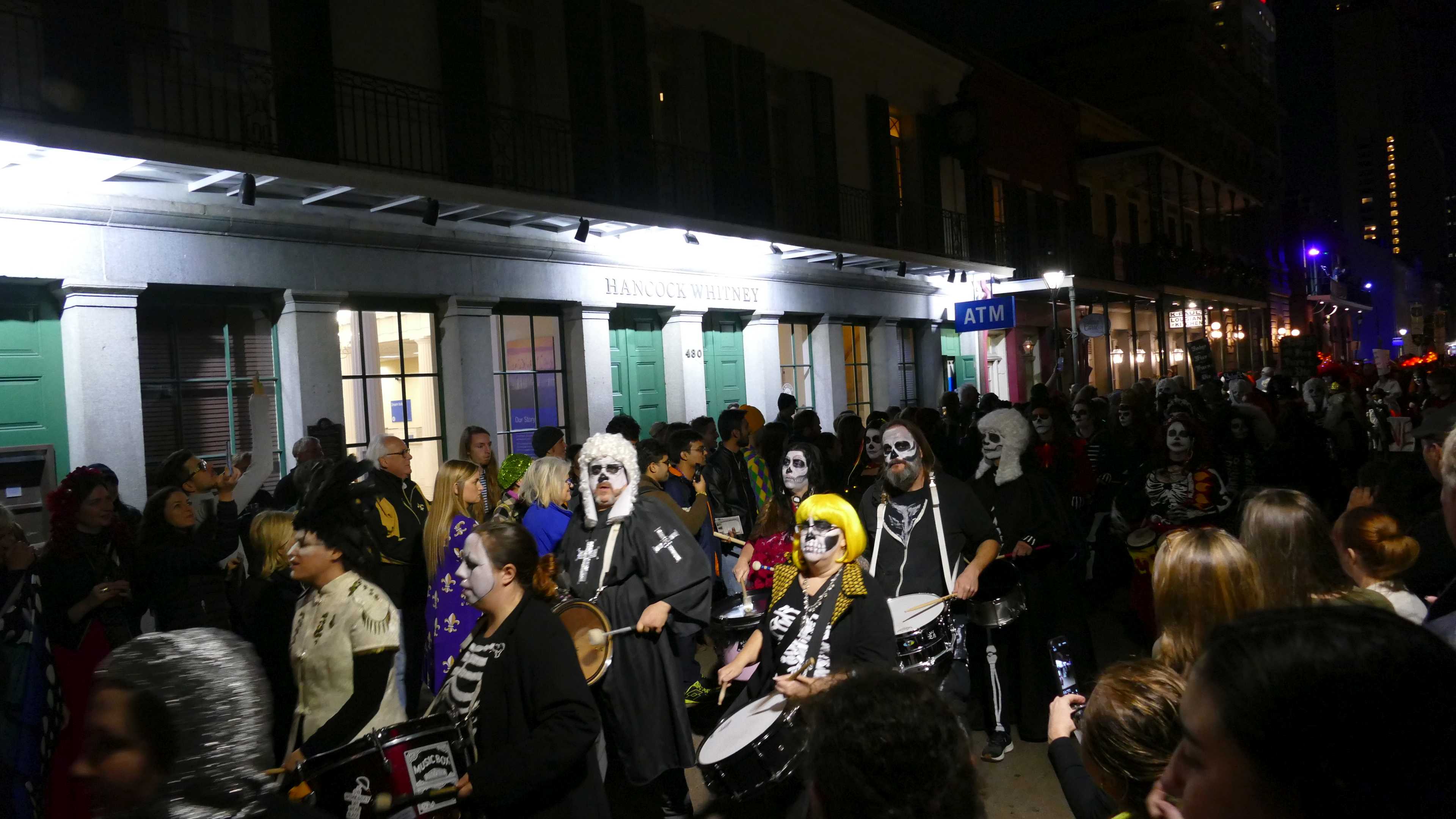 Als die Dämmerung dann langsam in die Nacht übergeht, wird es voll. Aus Straßen werden Flaniermeilen, in den Bars beginnen die Live-Musiker zu spielen, und die Türsteher locken mit 3:1-Angeboten für Bier und Cocktails. In New Orleans darf man auch auf der Straße Alkohol konsumieren, nur nicht in Glasflaschen oder Gläsern. Deshalb gibt es die meisten Getränke in Plastikbechern to go.