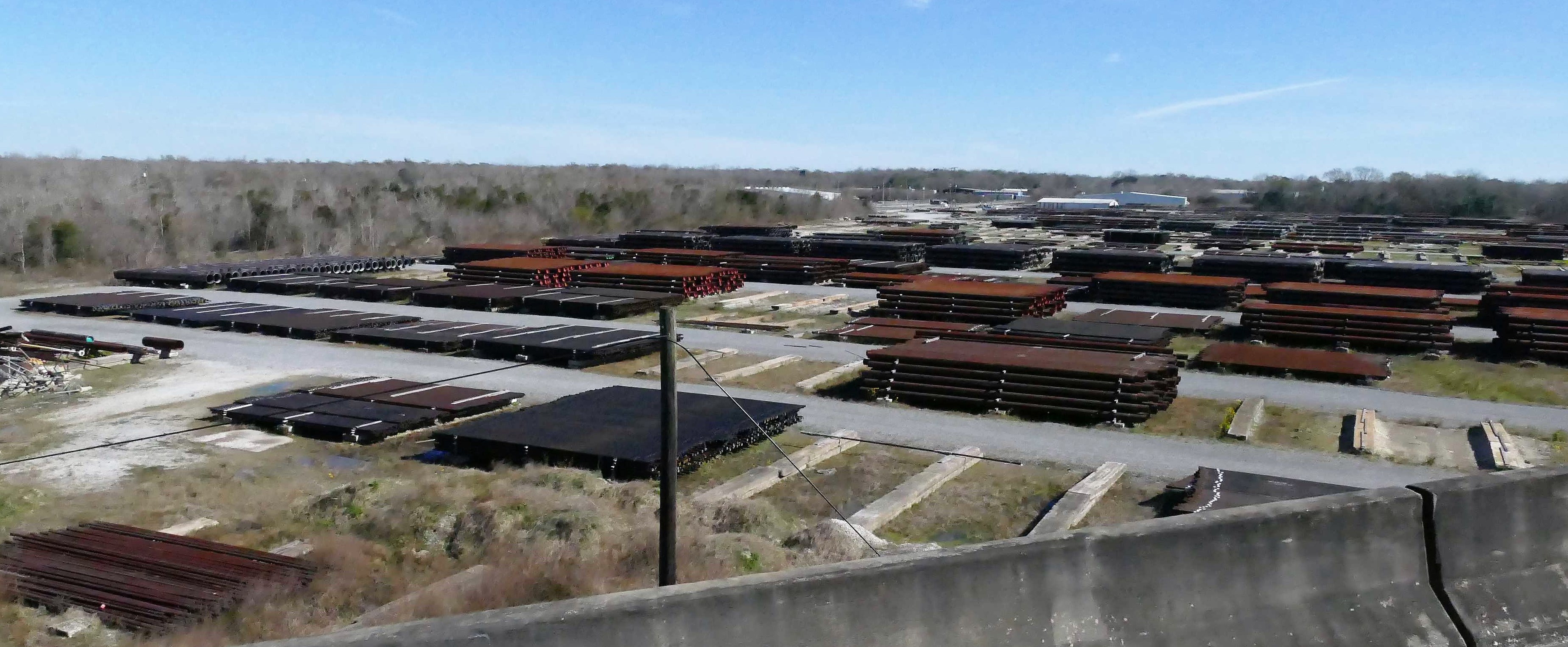 Die Gegend hier ist gespickt mit Firmen, die sich im Ölgeschäft tummeln, vor allem für Zubehör im Offshoring draußen im Mexikanischen Golf auf den Bohrinseln. Bohrgestänge liegt auf großen Lagerflächen, wird zum Teil vom LKW direkt auf die Zuliefererschiffe verladen.