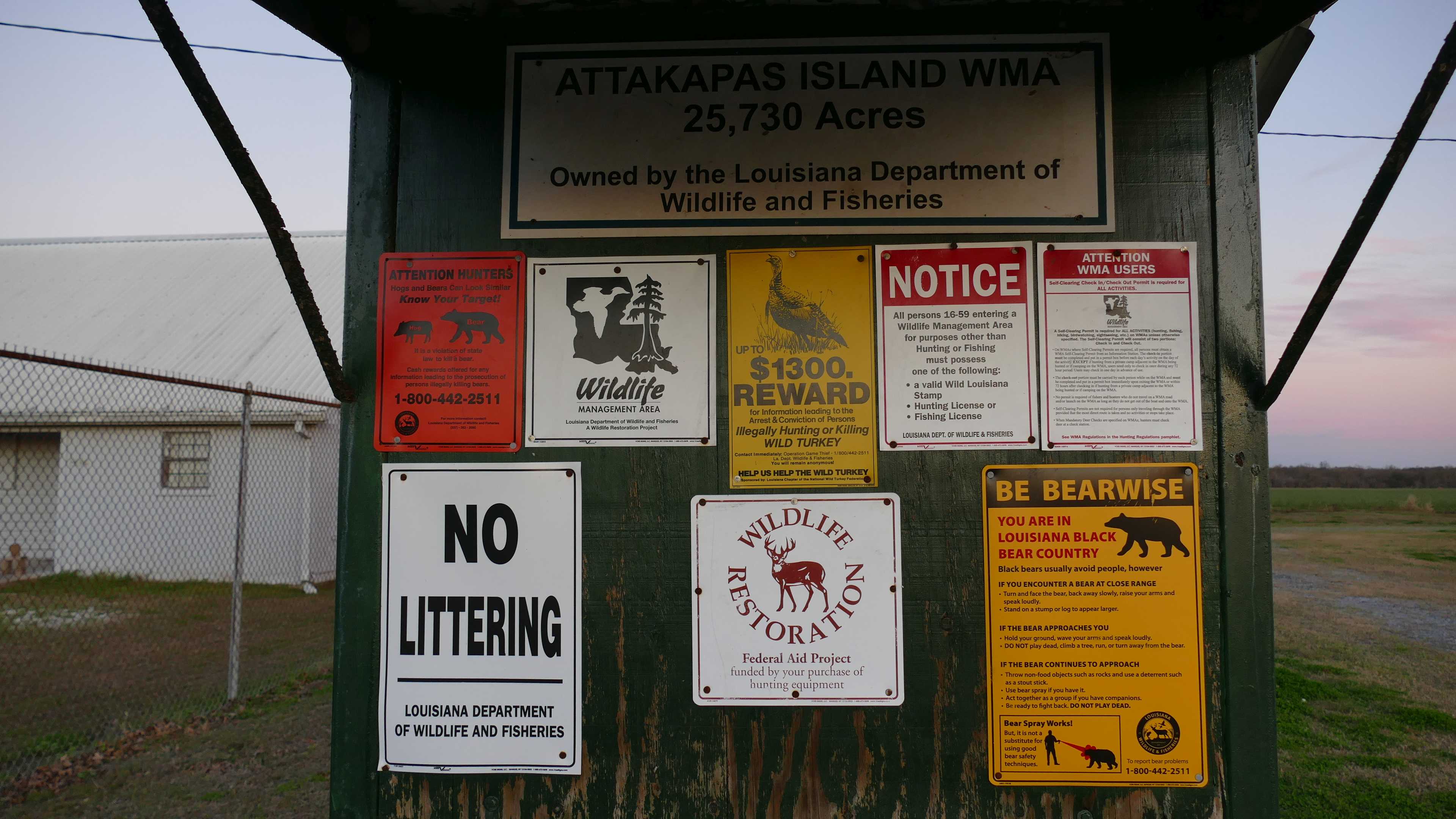 Freistehen Attakapas WMA, Franklin, GPS: 29.876288 , -91.454917, sehr ruhig, sehr empfehlenswert, kostenlos, Permit ausfüllen, Wasser bei der Bootsrampe