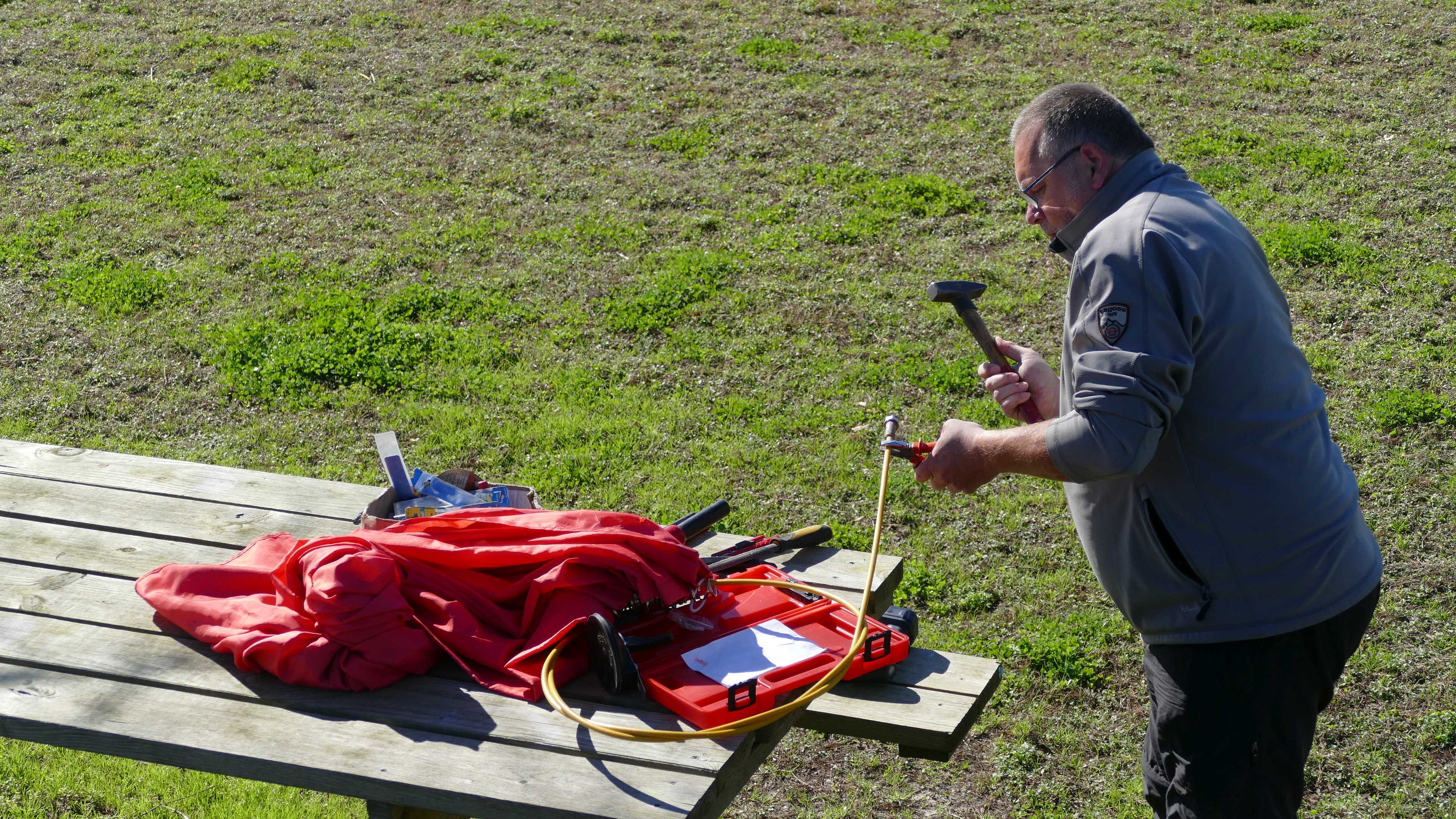 Bei unserem Duschvorhang ist auf beiden Seiten die Fiberglas-Stange gebrochen. Da muss mal wieder gebastelt, aufgepresst und ausgebohrt werden. Hat gut funktioniert und nach einer halben Stunde ist der Vorhang wieder einsatzbereit.