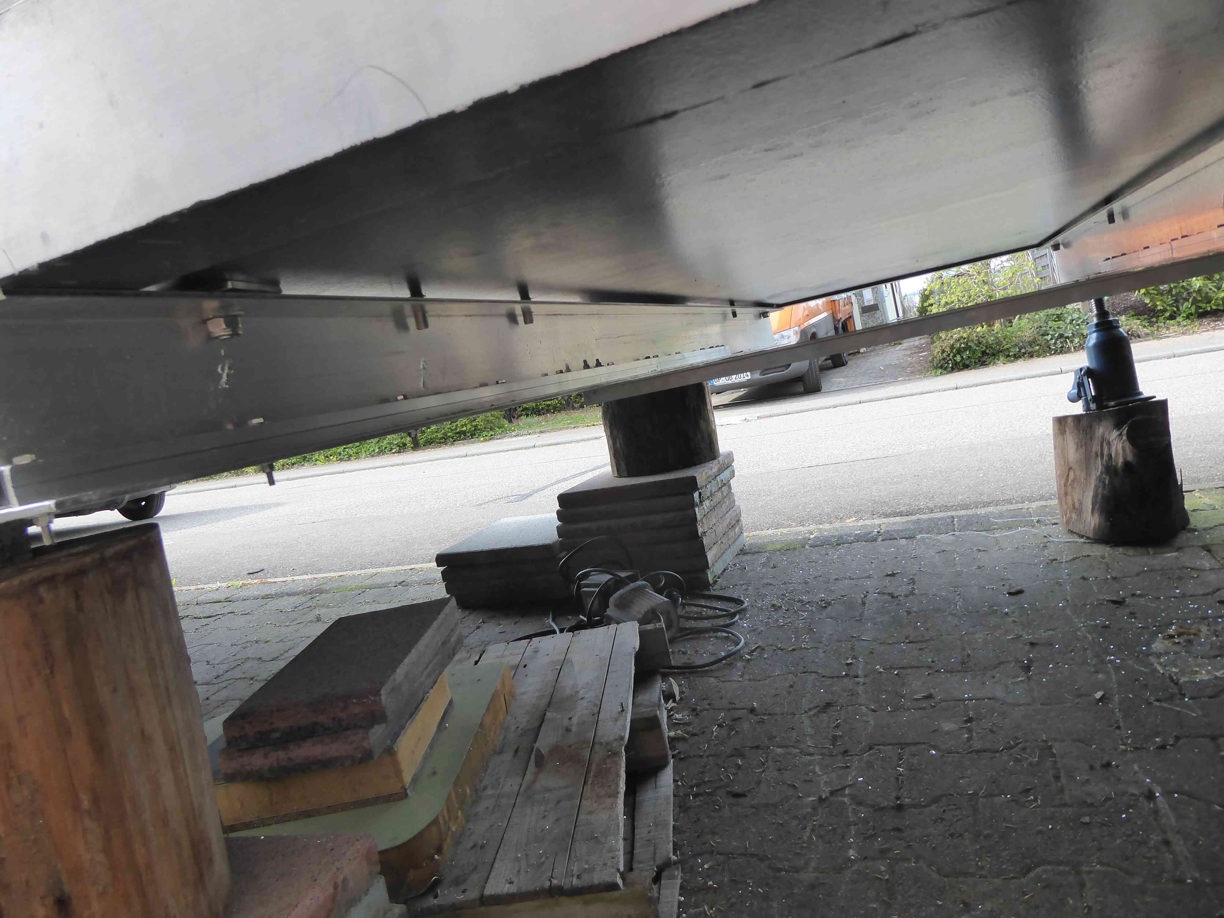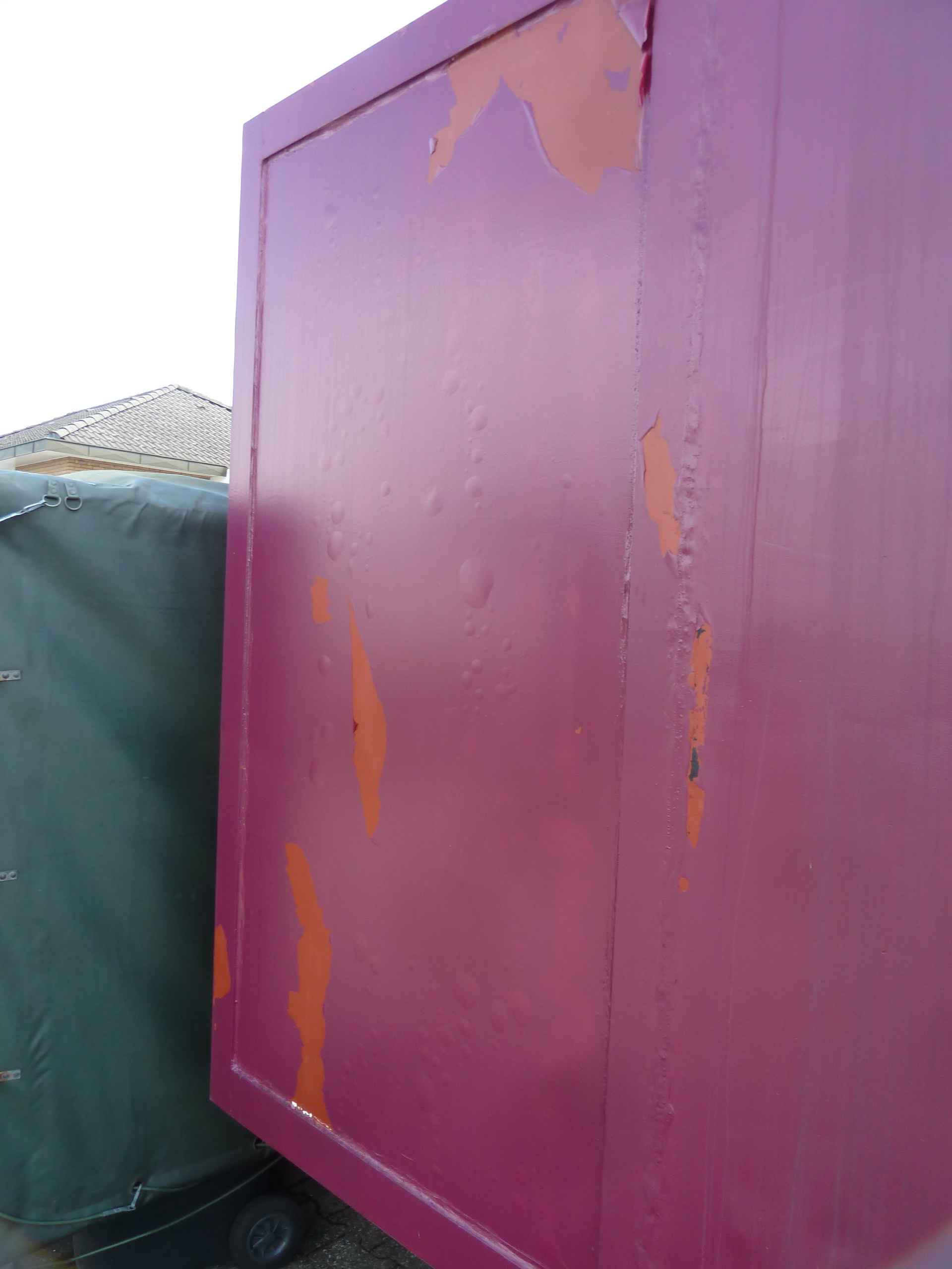 Ein weiterer Rückschlag kam im Laufe des März zum Vorschein: die Farbe des Anbaus, liebevoll von der Marion aufgebracht, löst sich ab, wie wenn es eine mit Wasser befestigte Folie wäre. Wir haben keinen Plan warum dies passiert, vorallem da wir mit der passenden Grundierung vorgearbeitet haben und diese auch korrekt haftet. Daher leider nochmal alles abschleifen und nochmal probieren.